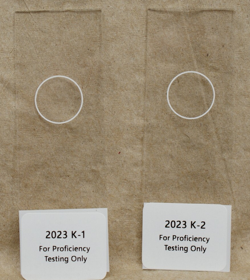 These specimens will only be included in the first and third shipments. Each sample is a formalin‐fixed prepared glass slide for Acid Fast Stain. Perform the Acid Fast Stain procedure on each sample as you would a patient sample.