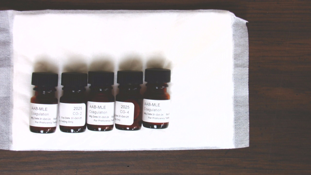 4. Before testing the specimen, mix contents by gently swirling. Test in the same manner as you would test a patient sample.